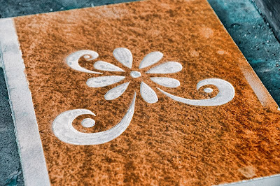 Polished blue lime plaster that is finished with olive oil. This is a new technique that we learned from Japanese plaster craftsman Noda-san this last December.
