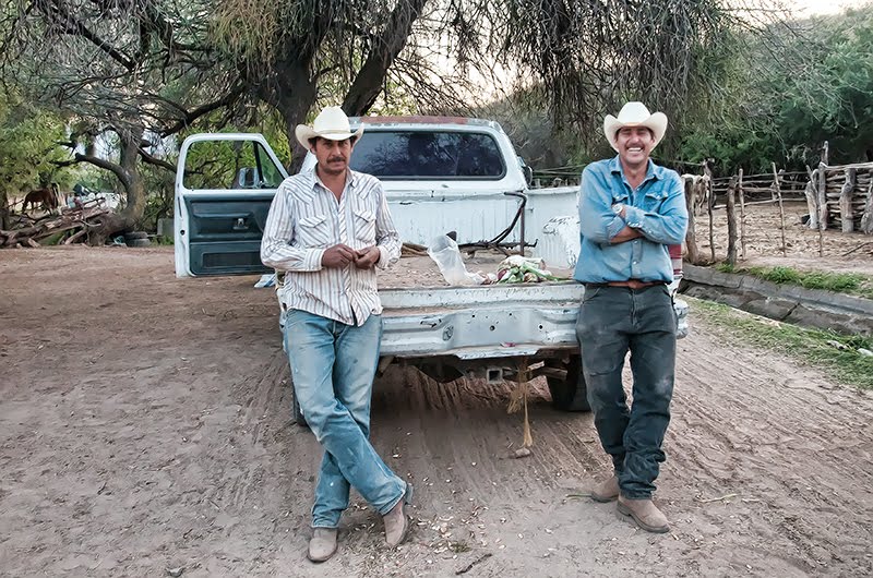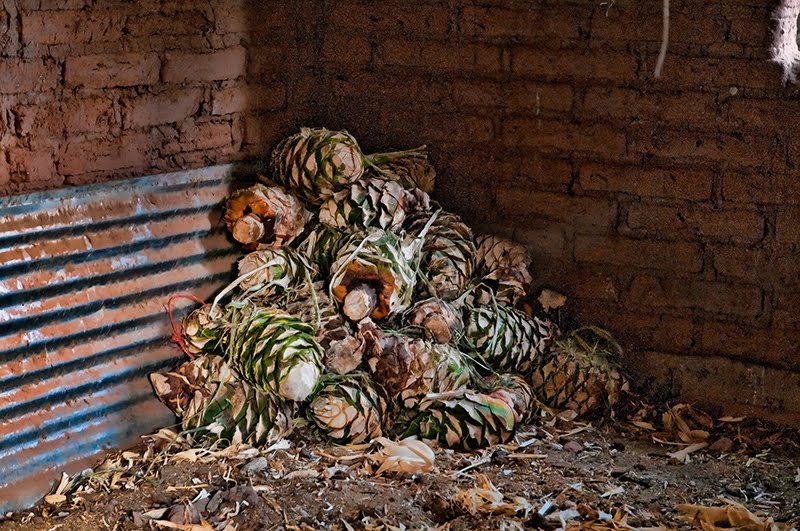 The hearts of agave pacifica being accumulate for the distillation of Sonoran mescal bacanora. There is no exact term that describes the men of the region, they are not cowboys in the strict sense of the word. The Ochoa family men distill fine mescal; have cattle and are cowboys in the finest sense of the word; keep milking cows; make cheese; grow vegetables and forage for their animals.