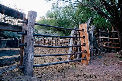Corral gate with slab of wood from the palo chino (havardia mexicana).