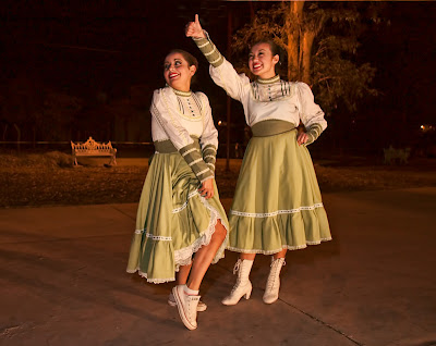 One couple that dances for the group, Jose Lauro and Olivia, at practice in Canelo, on stage and casual on our front porch.