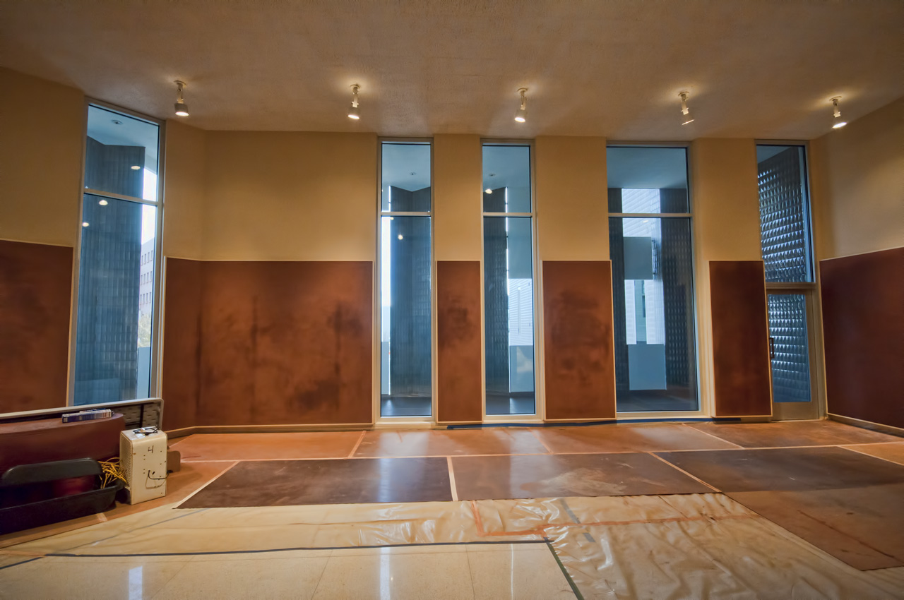 Stepping out of the 3rd floor elevator, one encounters the sculpture location. The room as we left it, plaster drying on the walls.