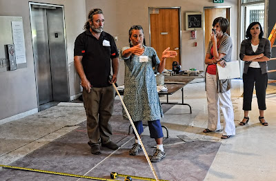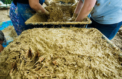 The logistics are clearly a challenge. Mixing and building with clay and straw can be messy work and not the ideal technology for a spotless and clean museum interior. At the Smithsonian in Washington D.C, the site of the “Always Becoming†project, we worked outdoors, mixing and cleanup were easy. When working indoors, as was the case last year at the Arizona State University Ceramic Research Center, even though we worked inside the building, we were able to clean tools and mixing equipment outdoors. In Denver, it will be winter during the early stages of the project with the work happening on the 3rd floor of the museum. That means storing the materials in an accessible location, transporting them to the work area, mixing on the balcony in a heated tent, doing a small amount of cleaning in an adjacent utility room and lastly taking the big stuff down to the loading dock in the basement for the remainder of the cleaning. Few things are worse than wet hands in cold weather. Fun!