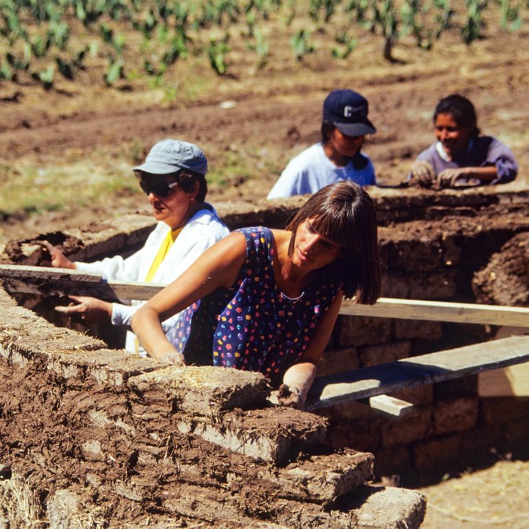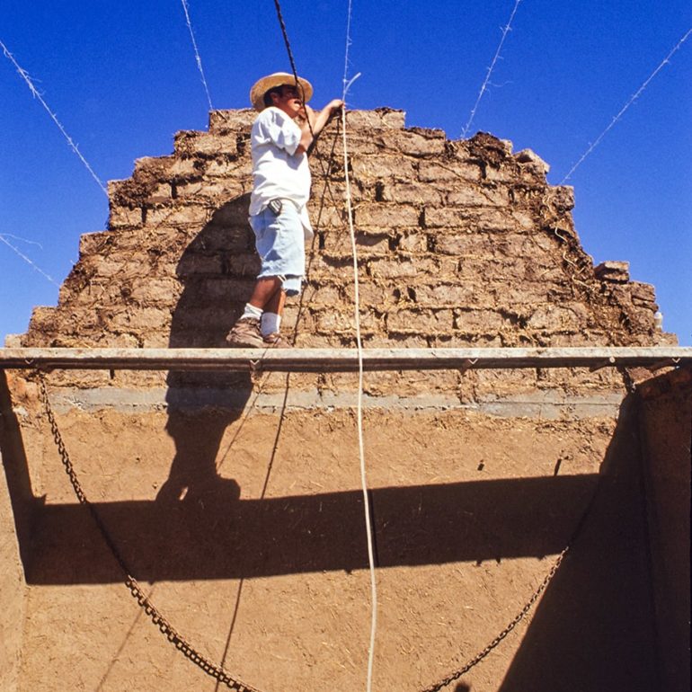 We undertook this project before we had learned the problems we encountered on the dome – lack of compressive strength with the straw/clay blocks and the difficulty in finding a dependable weatherproof coating. Nonetheless, it was a wonderful project watching brothers Emiliano and Teodoro Lopez build it. We learned an additional lesson that, unlike the dome, which was easy to build, the vault was much more complex and clearly beyond the skills of the average person. We didn’t continue with our research into vaults as it was all to obvious that it was something that would ultimately be limited to a few highly skilled individuals.