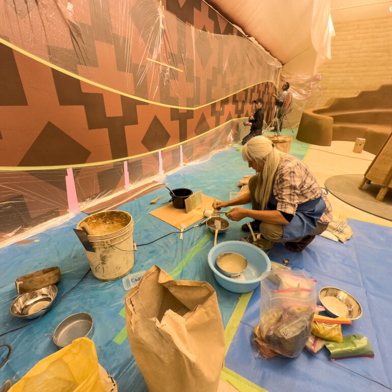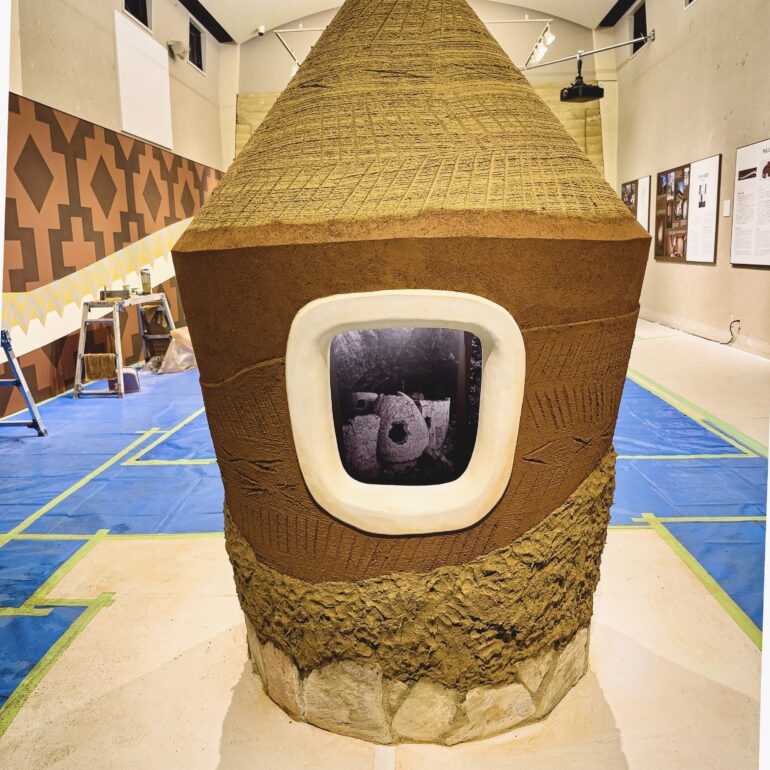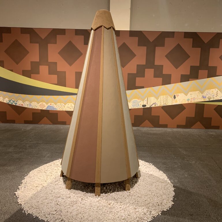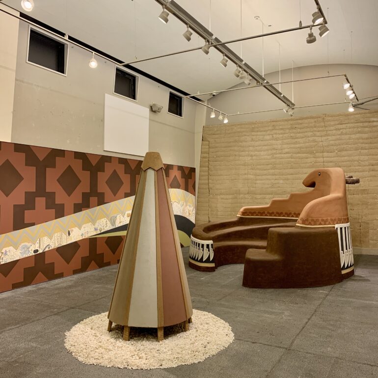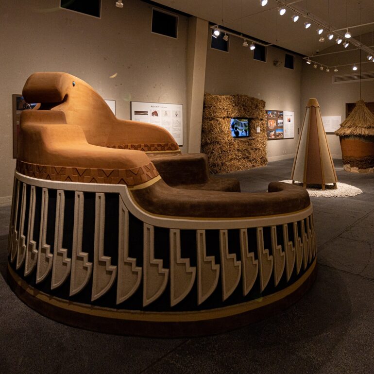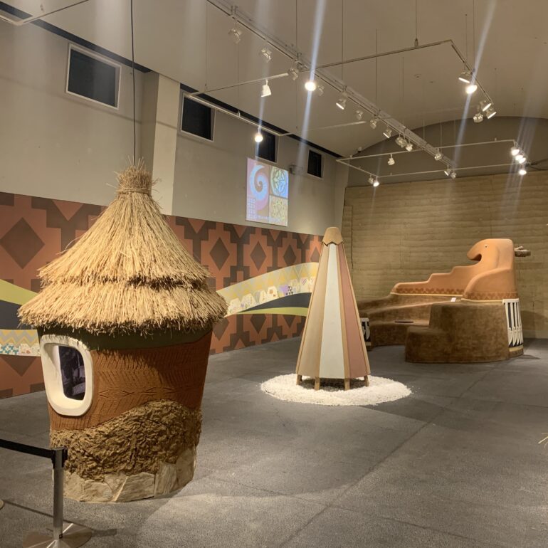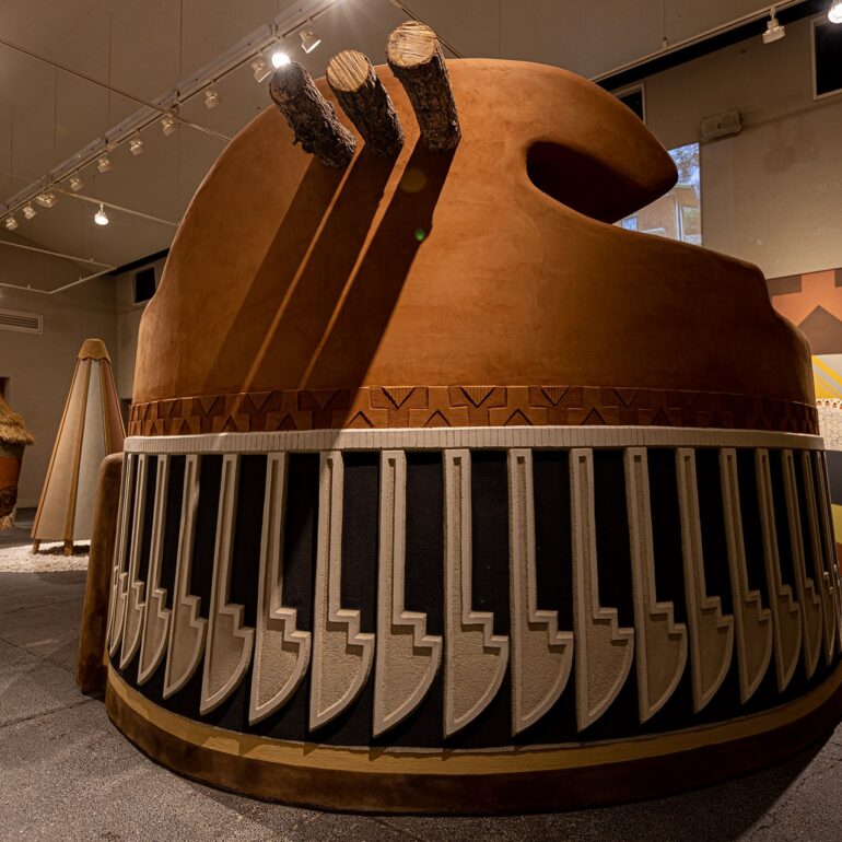 In spring 2023, Athena and Bill visited Japan for the first time as visiting artists for “Rooted in Clay,” a collaborative earthen art exhibition held at the INAX Museum in the pottery town of Tokoname, Aichi. The museum, dedicated to the many-faceted world of clay and ceramics, hosted an exhibit that would highlight the expression of clay through various cultures. Three sculptural forms were worked on by each artist representing their culture; Athena Swentzell Steen, a Native American from Santa Clara pueblo, Bill Steen, from Mexico decent, and Syuhei Hasado, from Japan. The exhibited works were completed after eight days of public work.