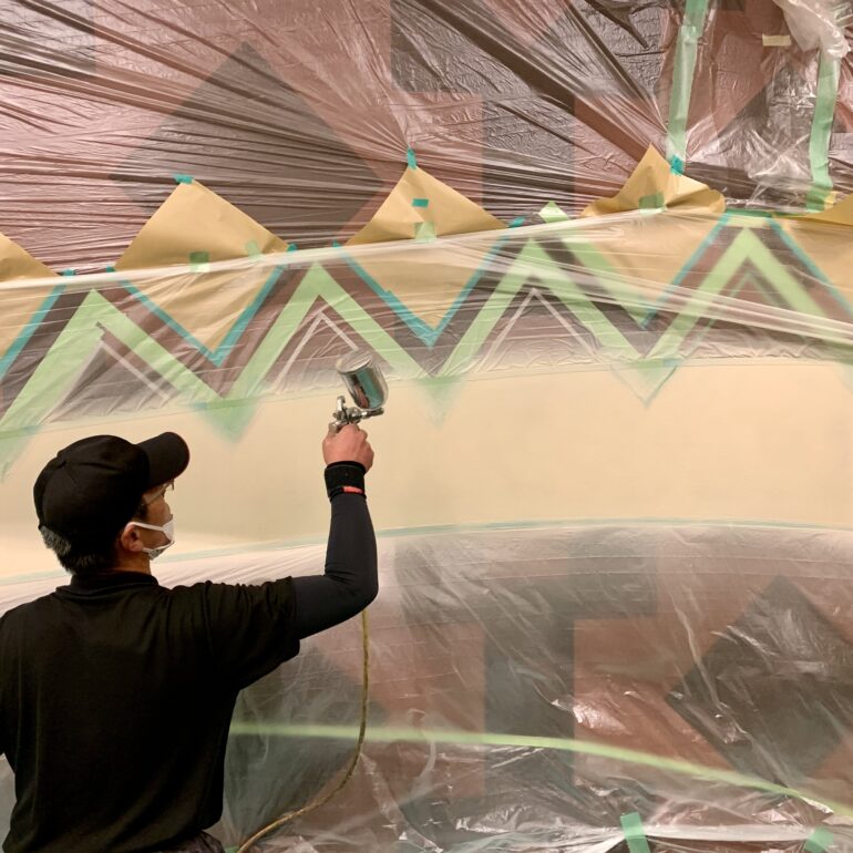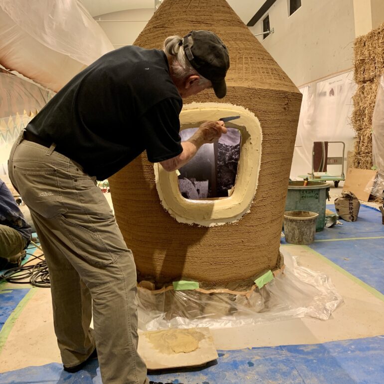 Syuhei Hasado (https://www.syuhei.jp) had visited the Steens in 2004, 2007 and 2015. Eight years before, after a visit by Akira Kusumi, an honored clay plaster craftsman from Japan, Bill and Athena were exposed to the unbelievable plastering skills, depth of clay knowledge and large array of tools being used throughout history in Japanese plaster traditions. The doors to artistically refined possibilities were blown wide open. Anxious to learn more, Bill engaged Kimie Tada, editor of CONFORT Japanese plaster magazine and an enthusiastic promoter of all forms of earthen construction and clay plasters, to find us a craftsman who could teach us and others more about the Japanese way of plastering. Eventually, it was Syuhei, a master plasterer and artist, accompanied by Kimie, who found their way down to Canelo, thus further connecting us to Japan.