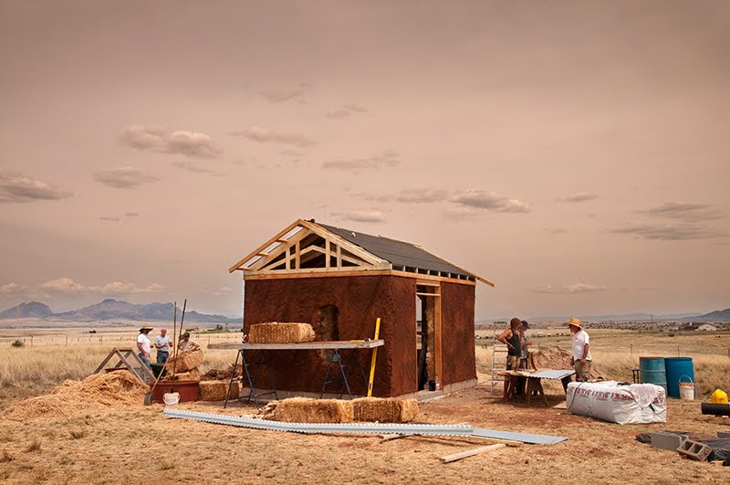 Spring for us typically means workshops, this year is no exception. As you know from previous posts, much of winter was spent traveling in northern Mexico, part of which was spent speculating and planning for straw bale buildings in the near future. Anyhow, once or twice a year, we teach a straw bale workshop as part of our Canelo Project workshops. For those not familiar with our work, they might be more correctly termed straw bale/clay buildings or houses in that we use as much clay soil as straw in the construction process. This year we did a small auxiliary building, allowable under the building code without a permit, due to the interior square footage that measures less than 120 square feet, for friends Jon Bolin and Shelly Eversole. Location of their site was approximately fifteen minutes from our home thereby allowing us an easy commute to the site.