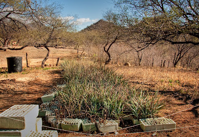 Conscious of the over-harvesting of the wild agaves, Roberto has begun a program of breeding the agaves he will need for the future. Currently he has over 150,000 plants that he has transplanted to the hills around the main ranch complex. Many think that the ideal conditions for the agave pacifica is land where the white barked palo blanco tree (acacia willardiana) is found growing. This tree is found in abundant concentrations on Rancho Tepua.